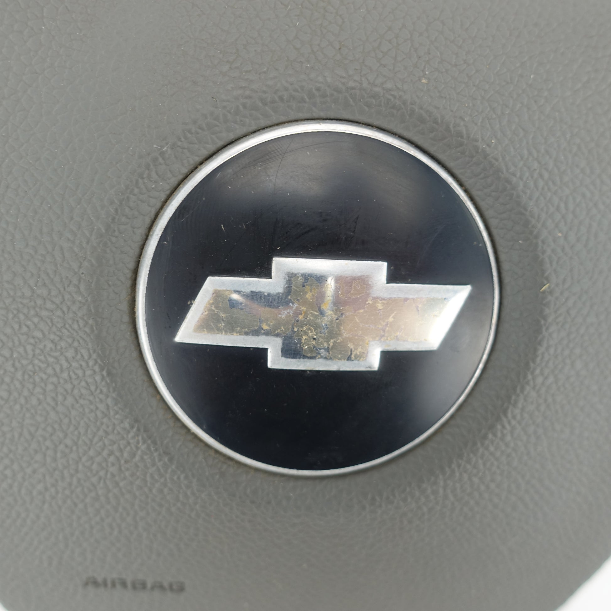 This is a lightly used airbag from a 2007 Chevy Silverado 2500. Some of the paint on the emblem is scratched off.